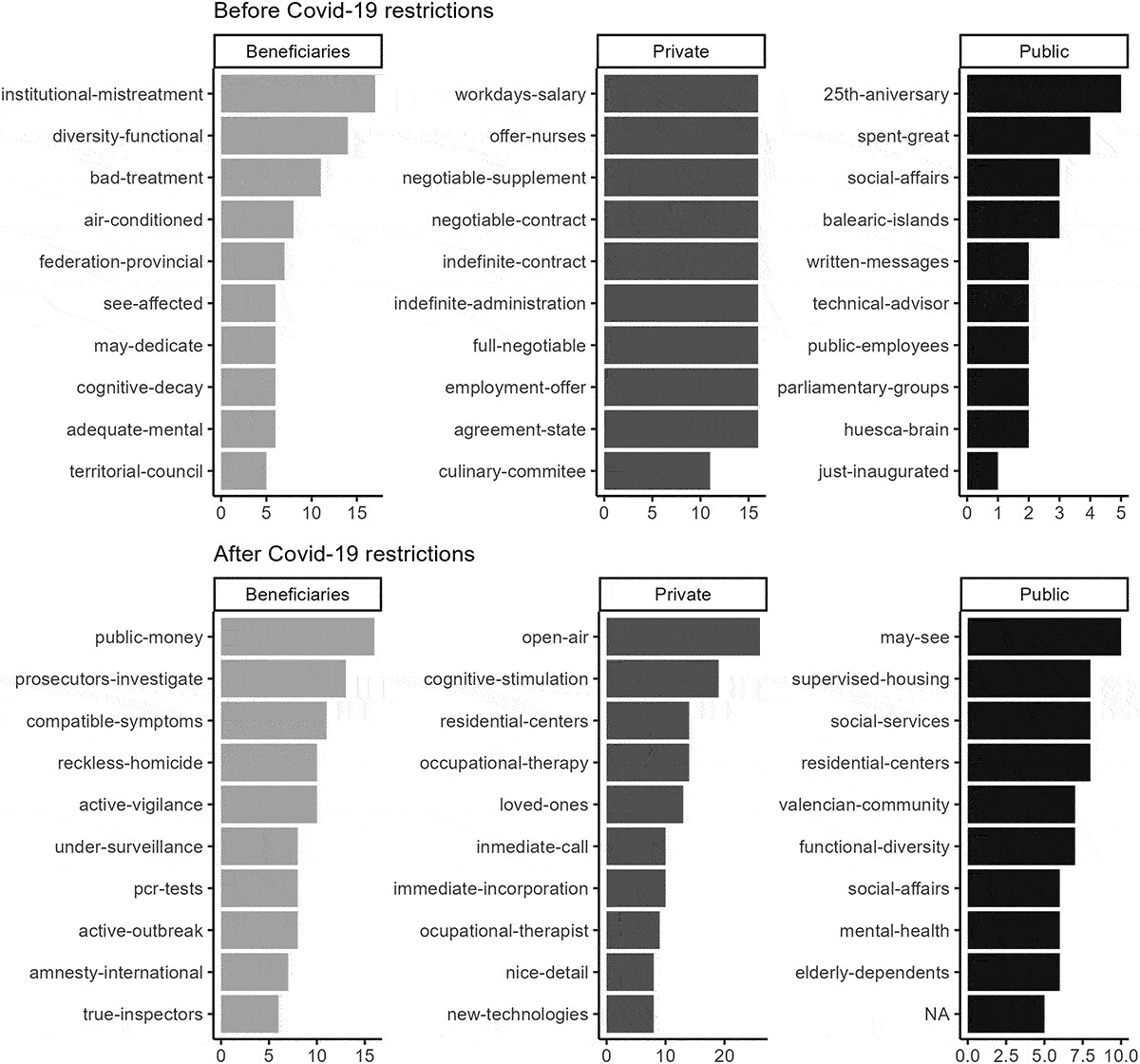 This study examines the extent to which general and substantive accountability is integrated into the language used by key actors involved in nursing home services. Particularly, we investigate the messages used by the supply side, which includes public and private organizations involved in residential care for older adults, and the demand side, which comprises organizations representing service beneficiaries. Moreover, we explore the alignment between the messages used by both sides of the accountability relationship. In the context of Spanish nursing homes, we analyzed a corpus of tweets by organizations from both sides of the accountability relationship, from one year before the outbreak of COVID-19 restrictions to after their implementation. Using text analysis techniques, we found that messages related to general and substantive accountability had a low priority before and after the outbreak. Public organizations were slightly more likely to employ general accountability terms than private organizations. This is particularly in non-crisis situations, although less frequently than organizations representing beneficiaries. Our analysis demonstrates a lack of convergence between the messaging on the supply and demand sides, indicating a communication breakdown between the two sides in the accountability relationship.